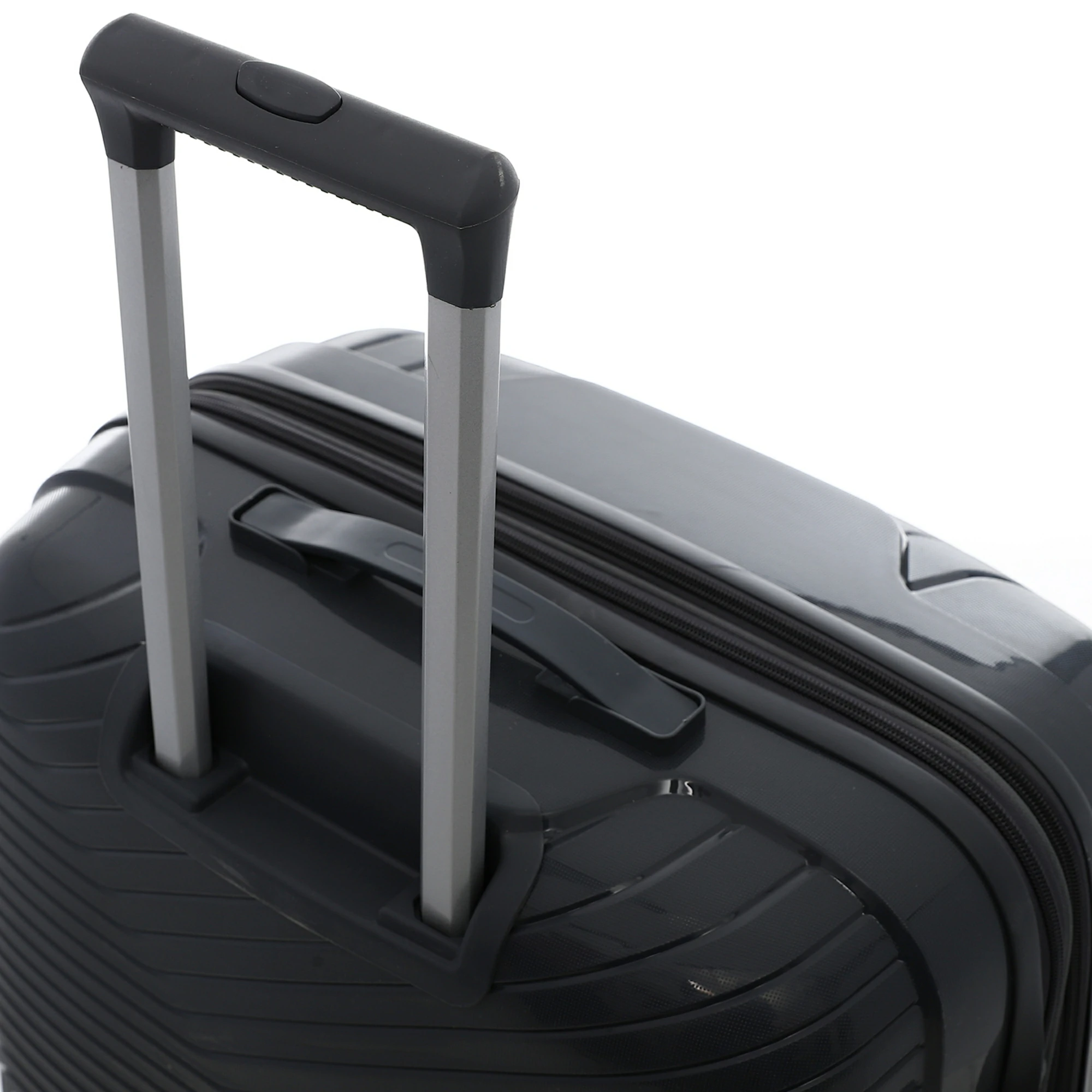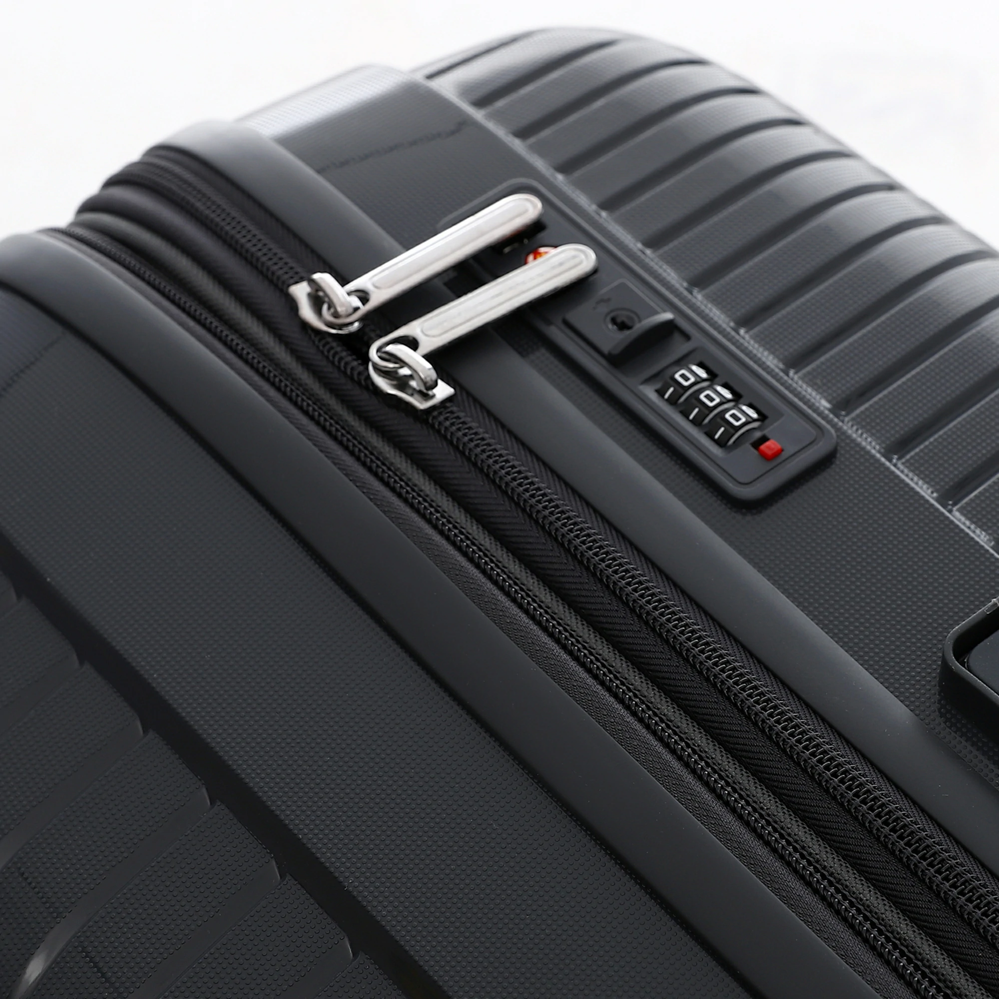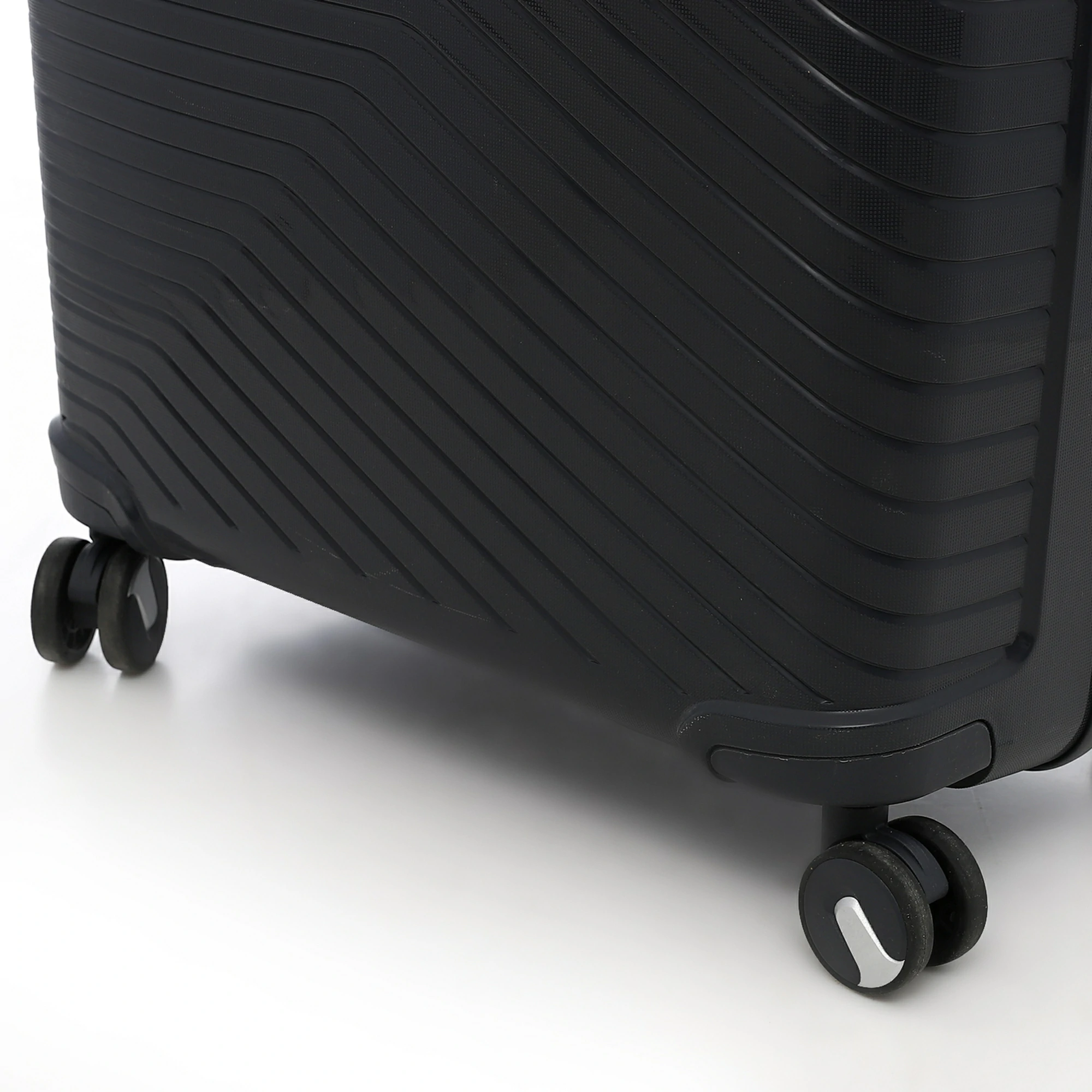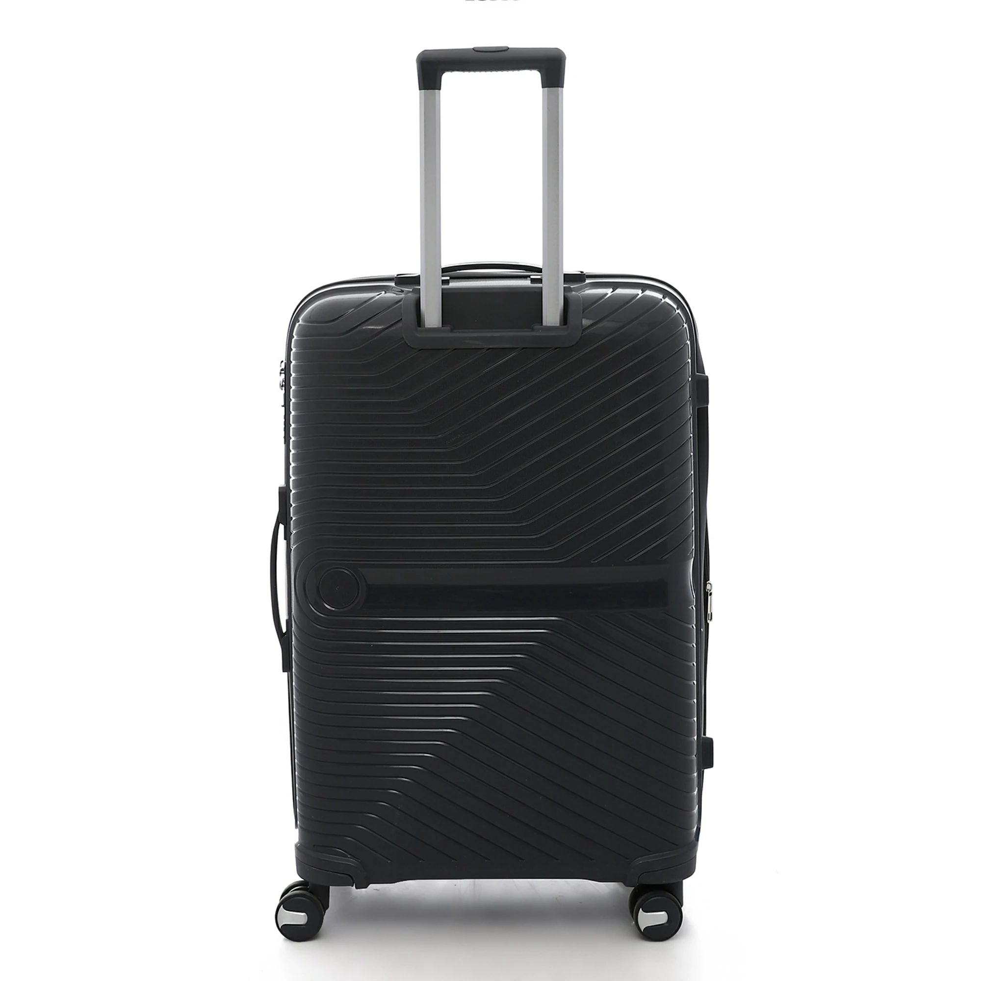 The CROSSLAND Medium Size 24” Grey Luggage strikes the perfect balance between storage capacity and travel convenience. Crafted from high-grade, impact-resistant polypropylene, this suitcase resists shocks, scratches, and rough handling. The bold Black fi