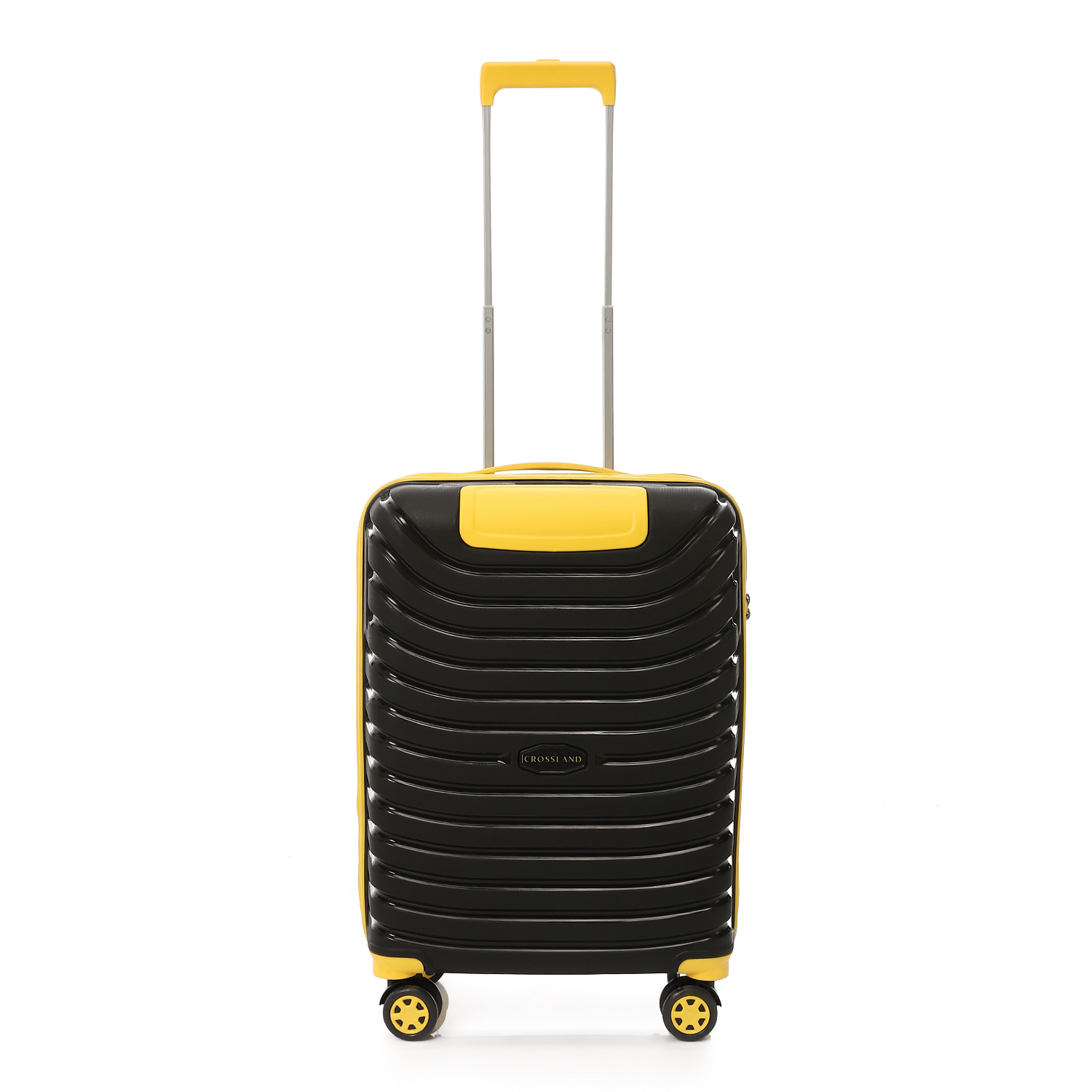 CROSSLAND 22 Inch Black Yellow Cabin Luggage – Lightweight, TSA Lock, Spinner Wheels, Unbreakable