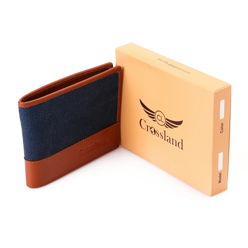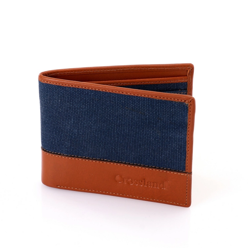 Genuine Leather – linen Bi-Fold Wallet – Slim Design – Blue