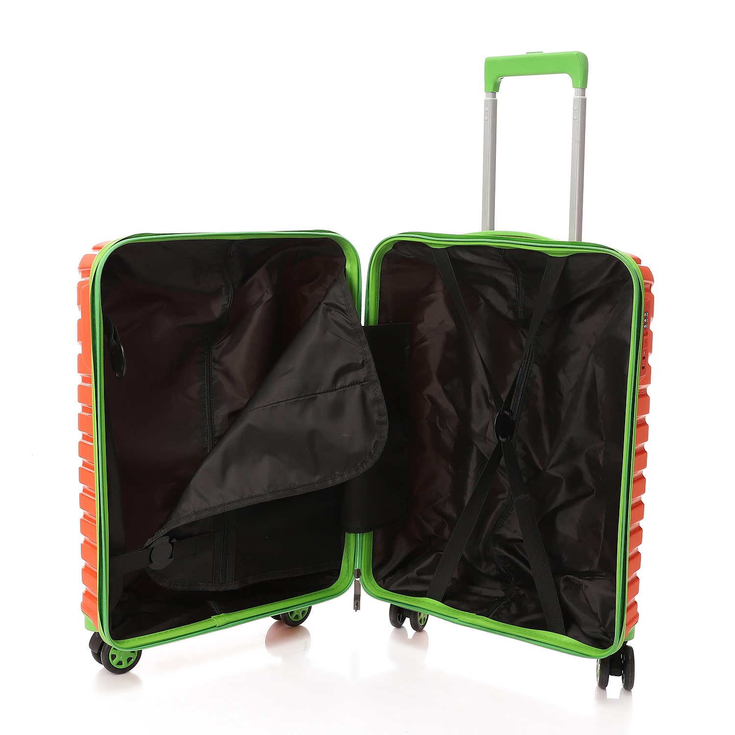 Durable, TSA-approved Cabin Size luggage in Orange – Green. Stylish, unbreakable, and designed for frequent travelers.