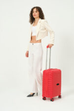 Durable, TSA-approved Cabin Size luggage in Red. Stylish, unbreakable, and designed for frequent travelers.