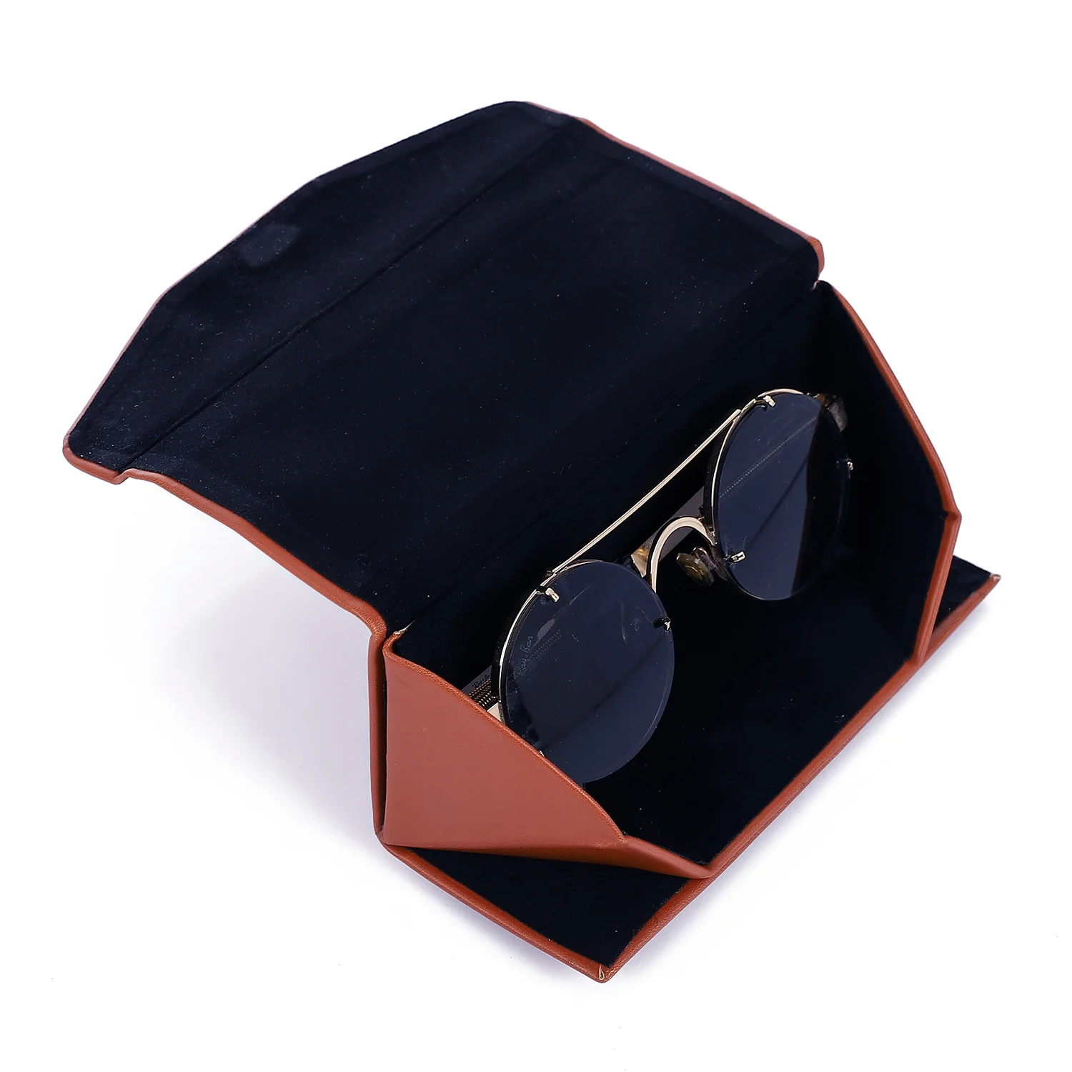 Eyewear Folding Slim Case , Velvet Lining – Brown