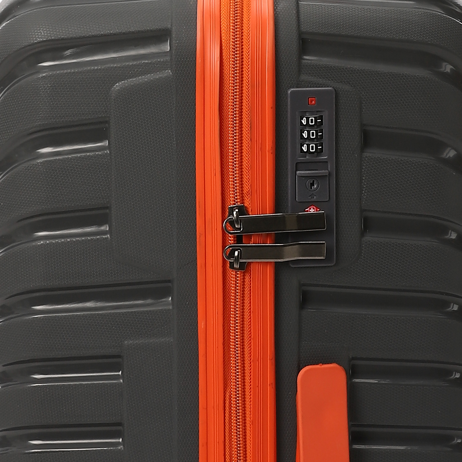 Durable, TSA-approved Large Size luggage in Grey – Orange. Stylish, unbreakable, and designed for frequent travelers.