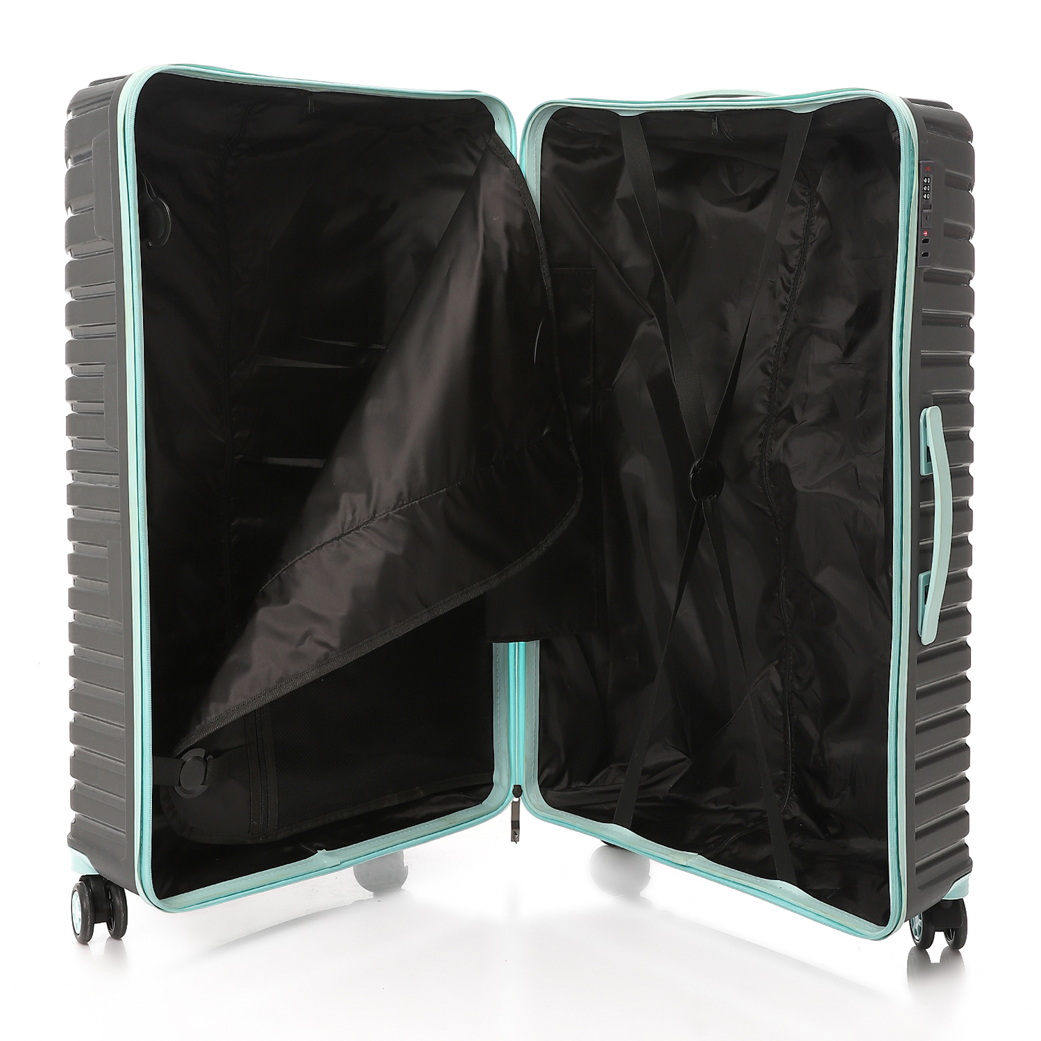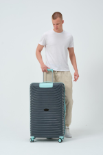 Durable, TSA-approved Large Size luggage in Grey – Turquoise. Stylish, unbreakable, and designed for frequent travelers.
