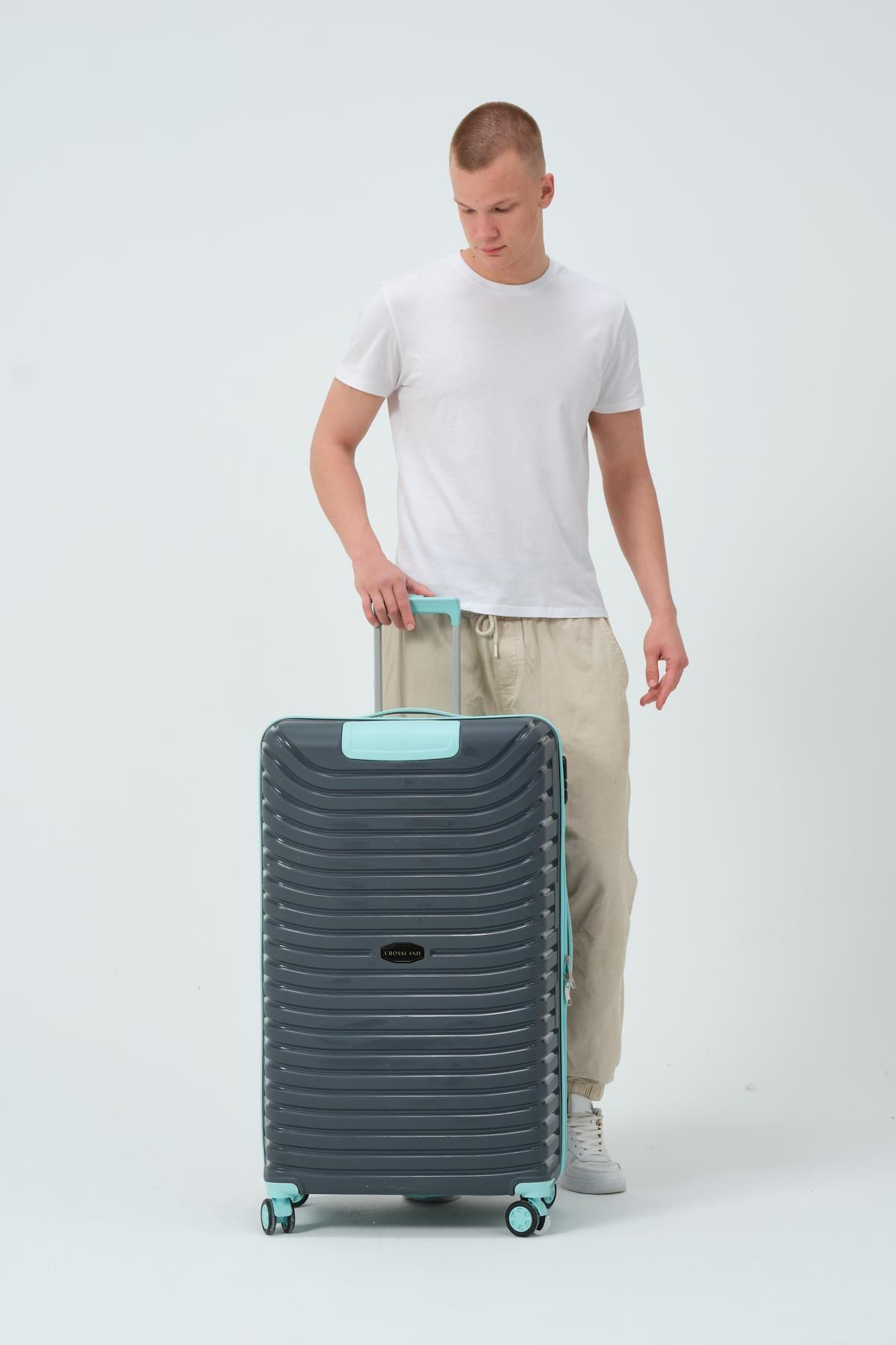 The CROSSLAND Large Size 32” Grey – Turquoise Luggage is built for extended travels, family vacations, or long-haul journeys. Its generous capacity offers ample room for all your clothes, shoes, and accessories without compromising weight or durability. C