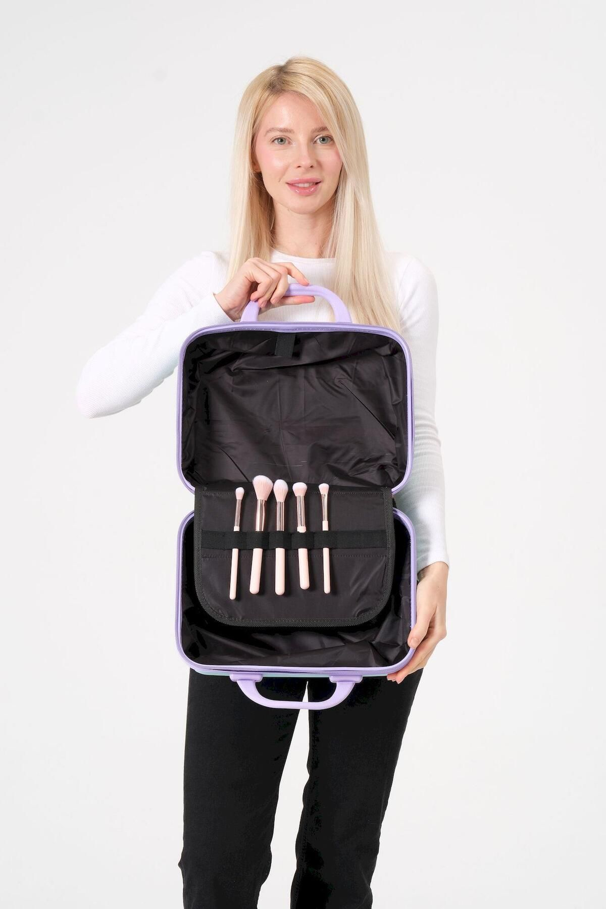 Elegant and practical makeup bag with waterproof shell, brush holder, and travel-ready design. Ideal for organizing your beauty essentials in style.