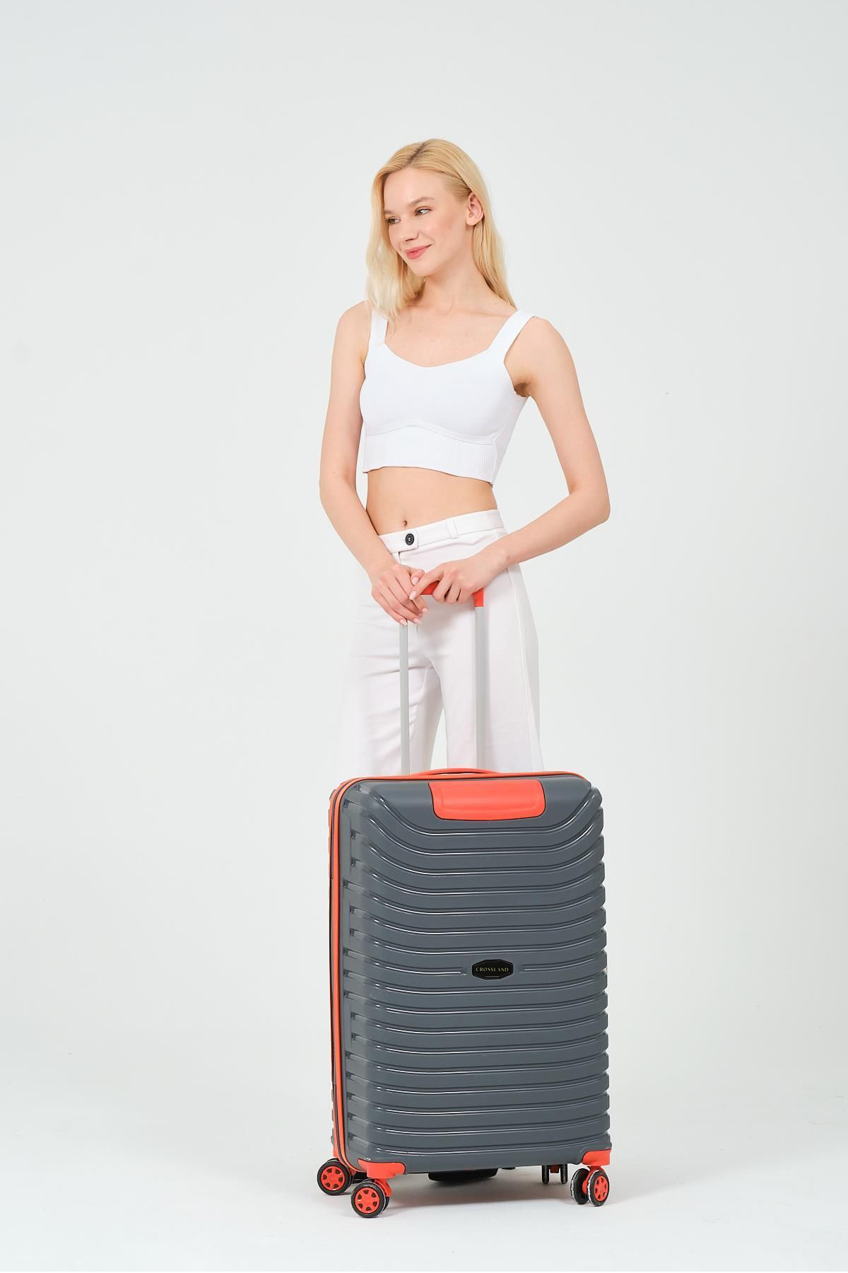 Durable, TSA-approved Medium Size luggage in Grey – Orange. Stylish, unbreakable, and designed for frequent travelers.