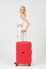 Durable, TSA-approved Medium Size luggage in Red. Stylish, unbreakable, and designed for frequent travelers.