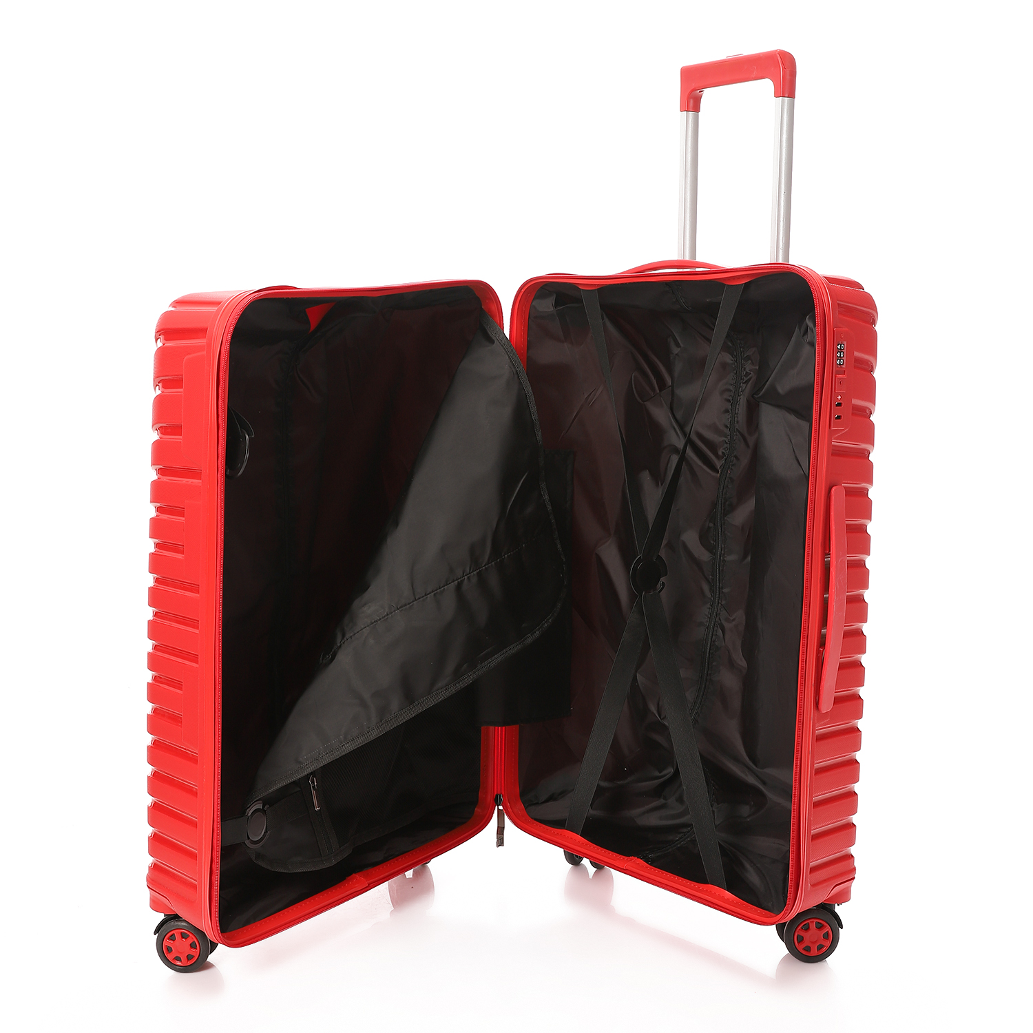 The CROSSLAND Medium Size 26” Red Luggage strikes the perfect balance between storage capacity and travel convenience. Crafted from high-grade, impact-resistant polypropylene, this suitcase resists shocks, scratches, and rough handling. The bold Black fin