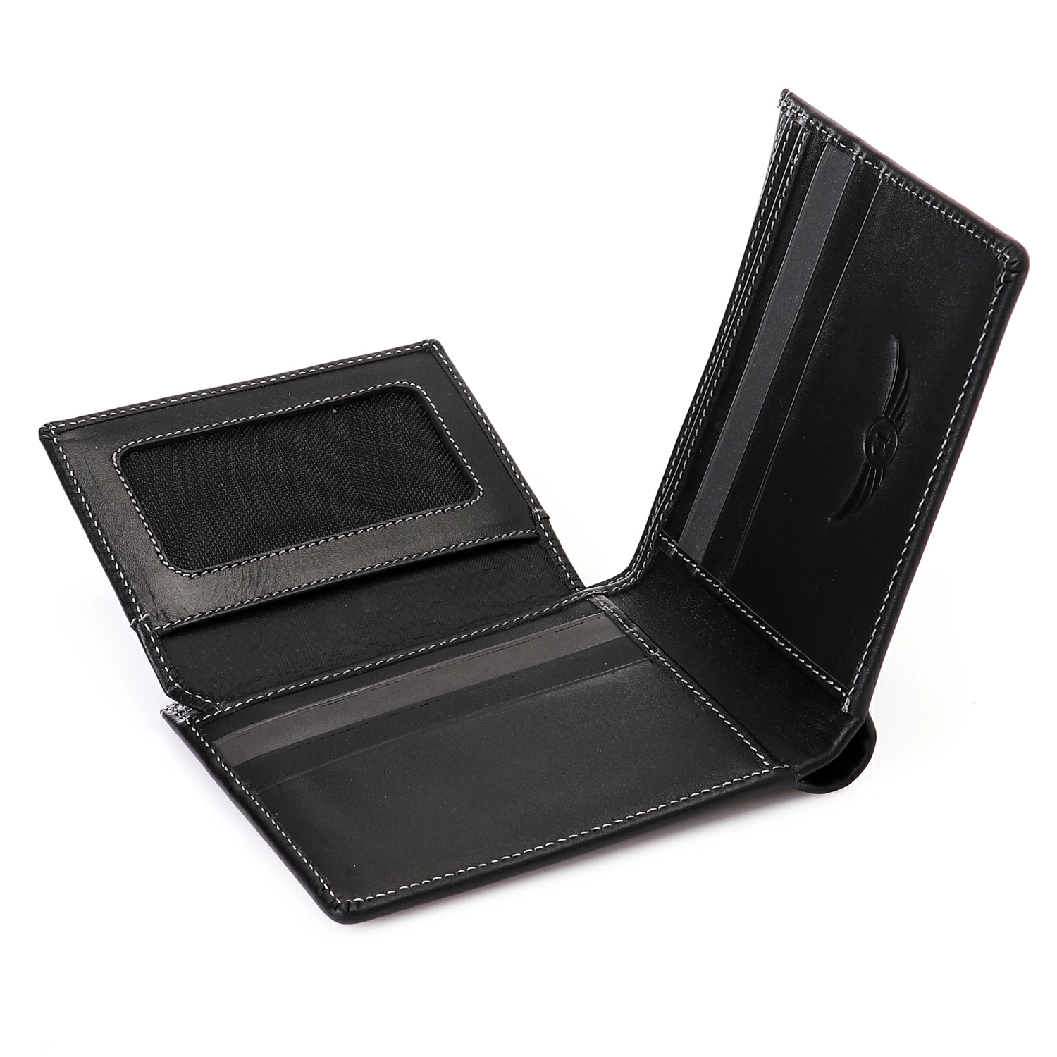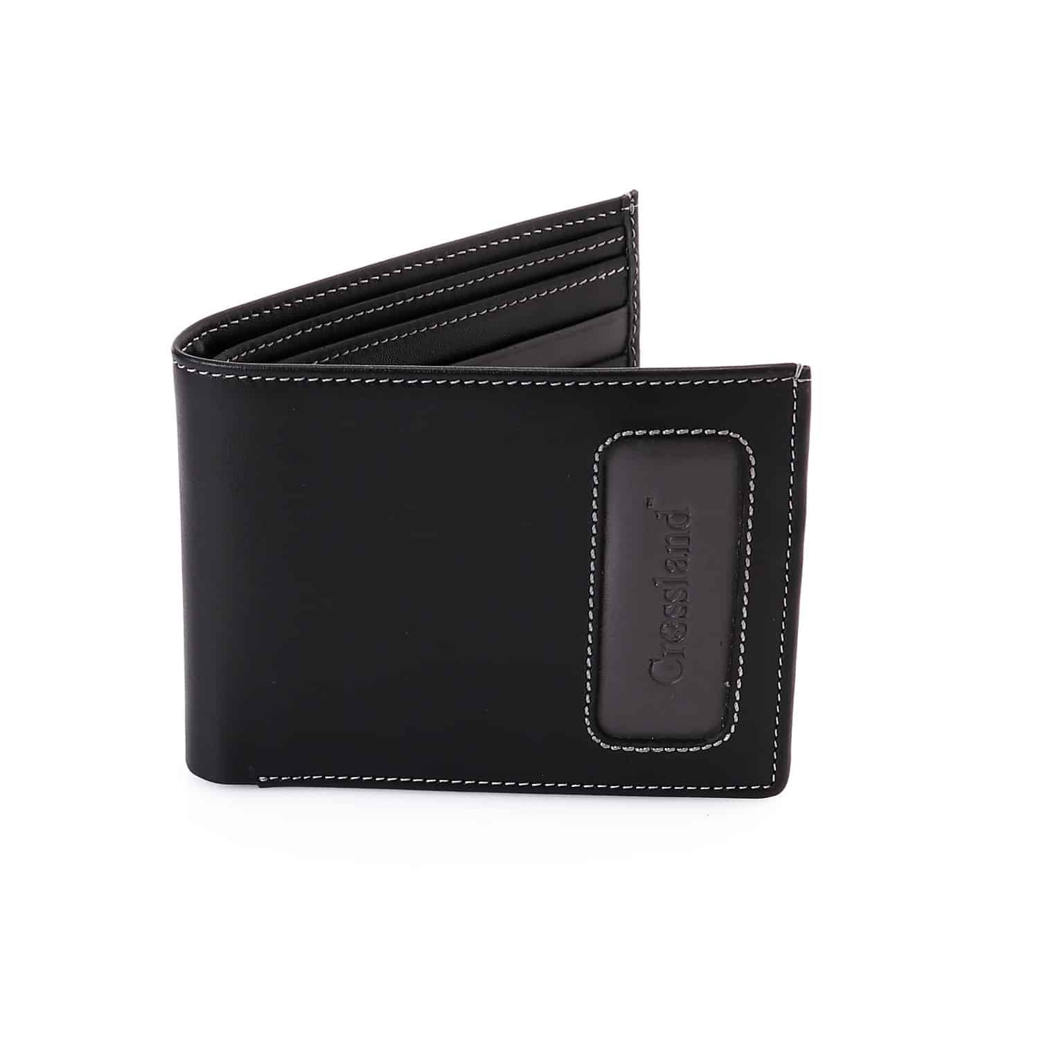 Genuine Leather Tri-Fold Wallet, Window ID Slot – RFID Blocking Technology -Black