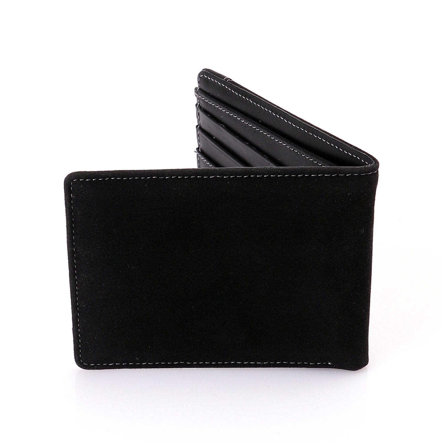 Genuine Leather – Chamois Bi-Fold Wallet – Slim Design – Black