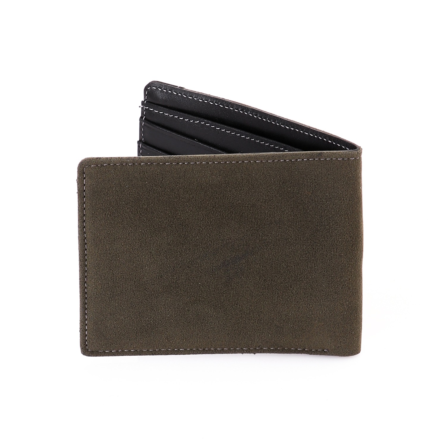 Genuine Leather – Chamois Bi-Fold Wallet – Slim Design – Olive