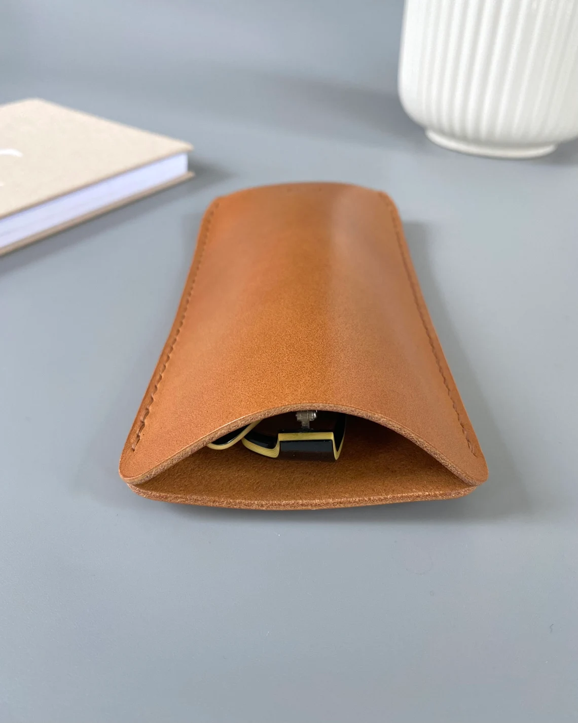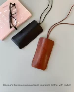 Leather Eyewear Glasses Pouch Case With Strap for Hanging around the neck or crossbody . lining interior with velvet for extra protection . You can use it for Mobil Phone Also
