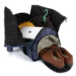 Travel smart with our Folding Duffel Bag crafted from durable linen fabric and genuine leather. Designed with a dedicated suit hanger section, accessory pockets, and a separate shoe compartment – all in a foldable, space-saving design.