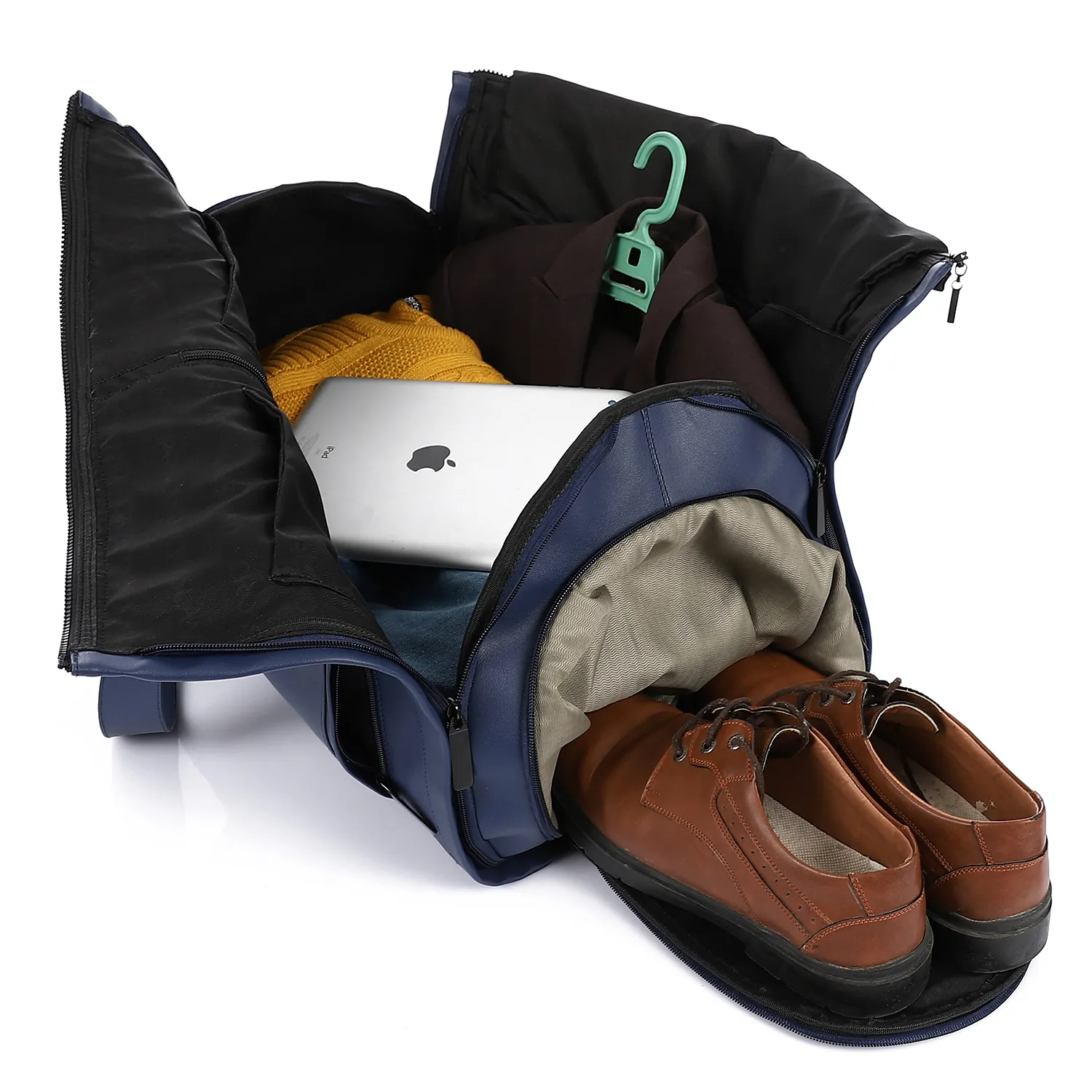 Premium Folding Duffel – Linen & Leather Travel Bag with Suit & Shoe Compartments